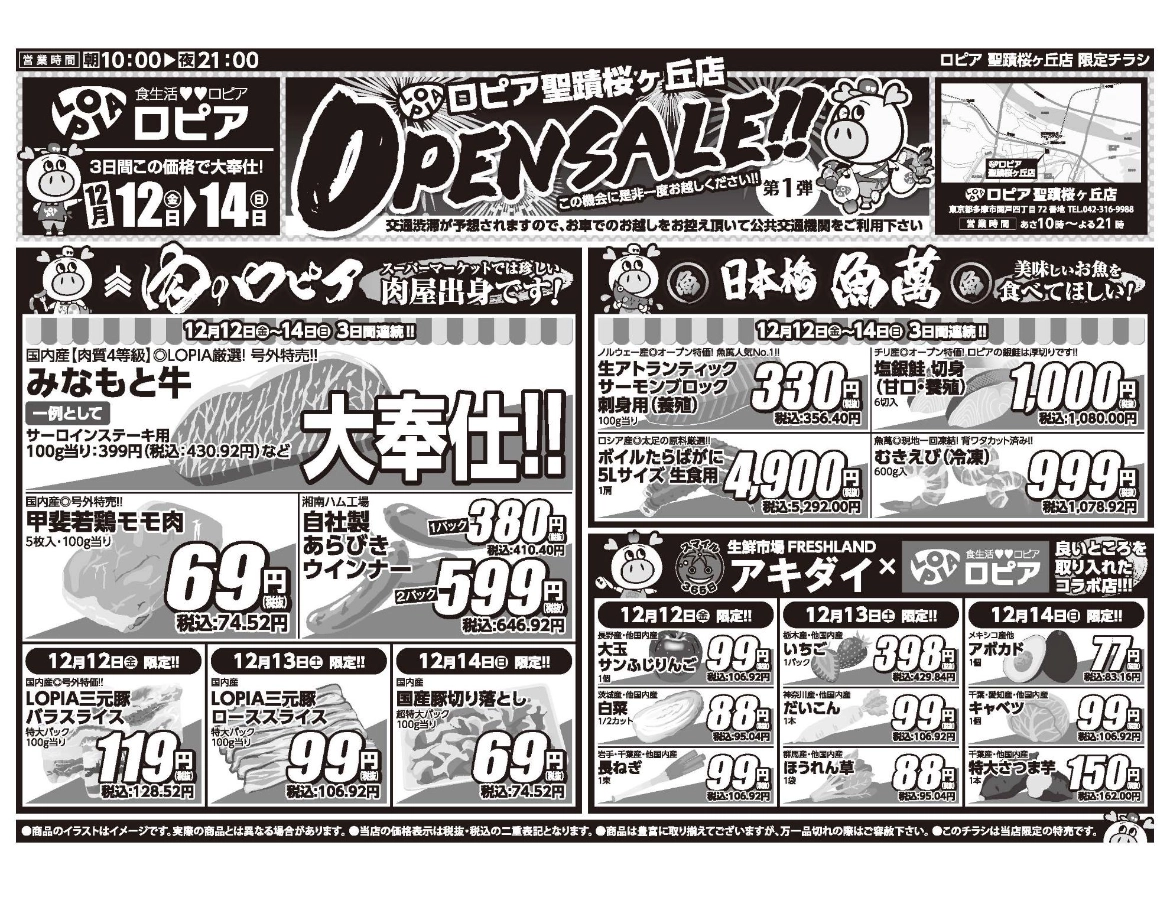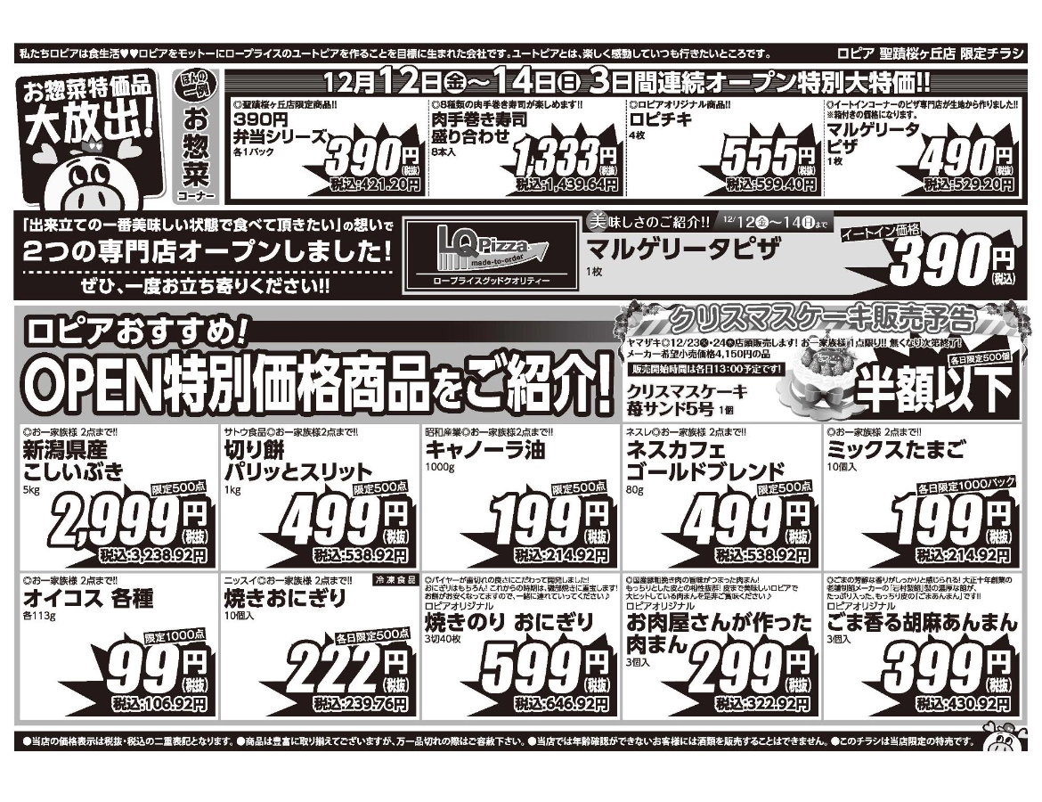 ロピア聖蹟桜ヶ丘店は、12月12日(金)にオープンし、現在はオープン直後の週末期間にあたります。