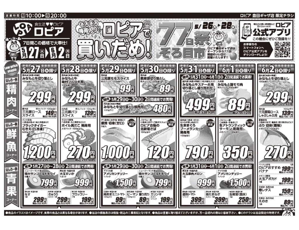 現在もお得な特売や限定セールが続いており、アプリ「ロピタ」からチラシ情報をチェックしておくと買い逃しを防げます。