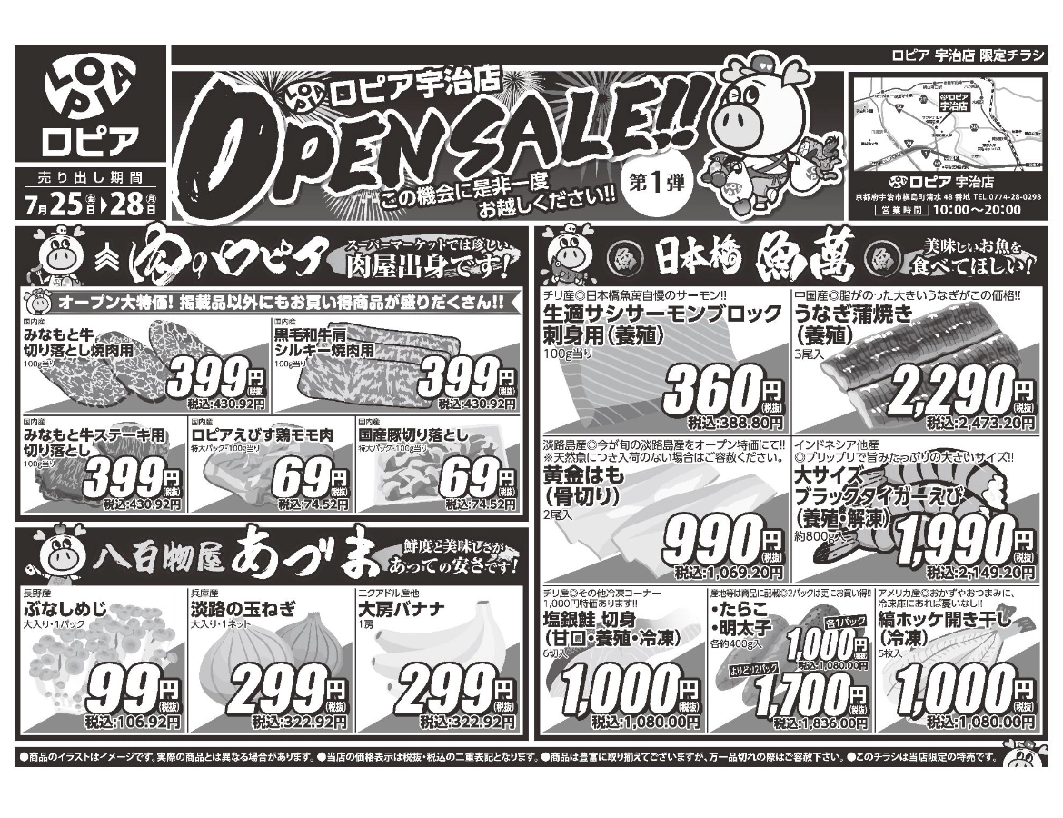 ロピア宇治店のオープン日は、2025 年 7 月 25 日(金)です。