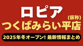 ロピア ロピアつくばみらい平店(仮称)のオープンはいつ?最新情報まとめ 2025年冬、つくばみらい市にロピアが初出店!オープン日・チラシ・オープンセール・支払い方法などオープンに関する最新情報を随時更新します! 2025.09.21 ロピア